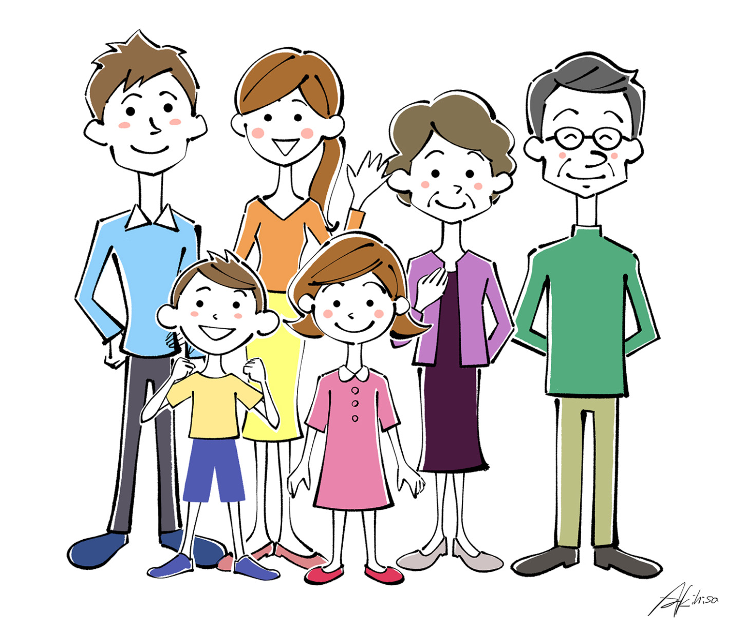 鉢で育てる大きなカブにジョウロで水やりをする家族のイラスト