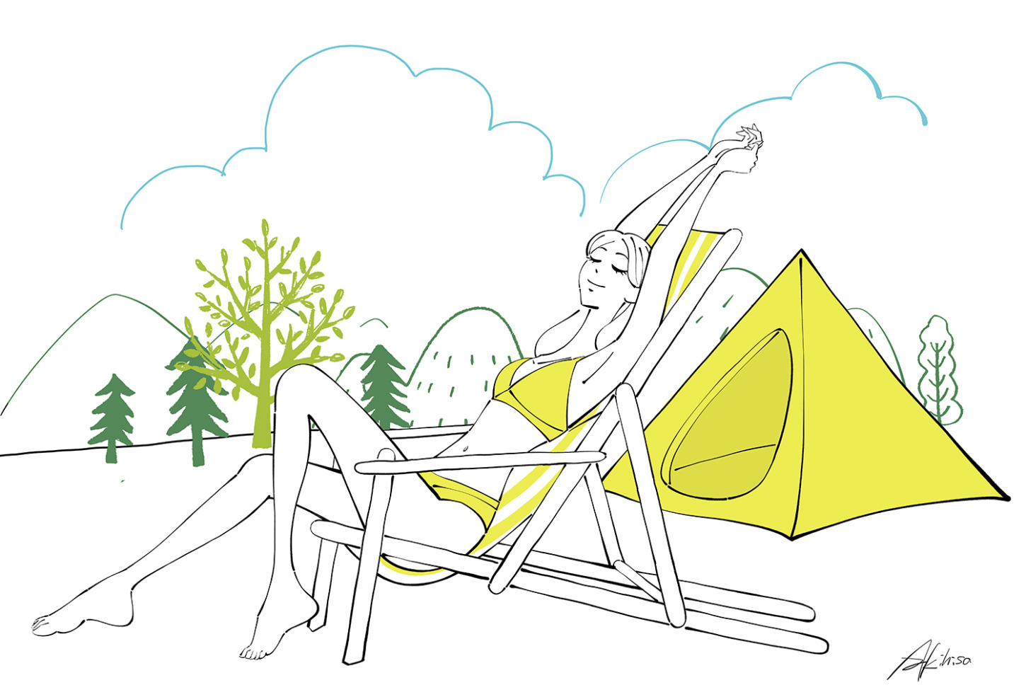 イラスト/水着の女性と夏の水辺(水彩タッチ)#iof005