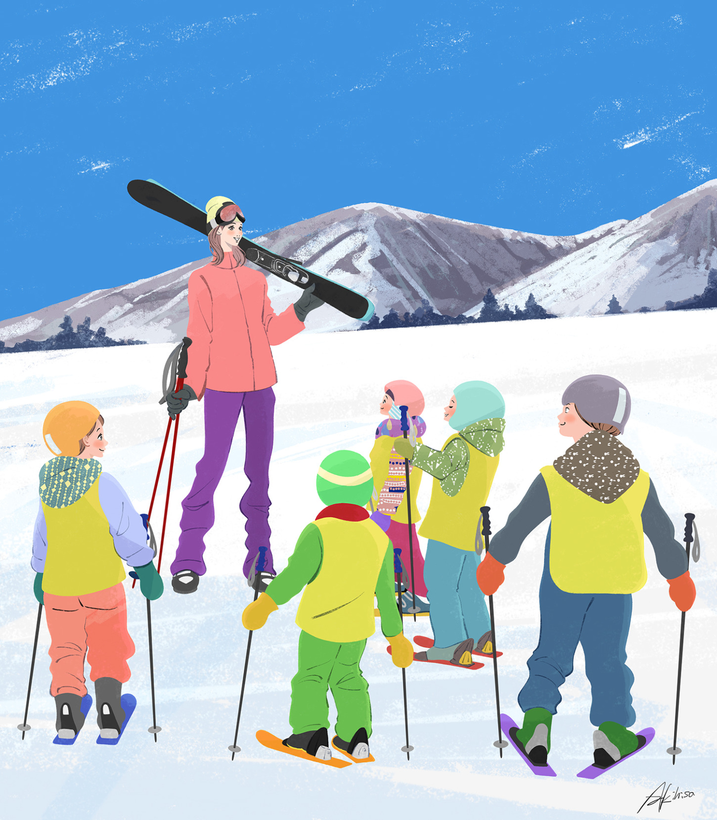 雪景色と子供たちの笑顔:広報誌「TR-mag.」掲載イラスト #iwf410