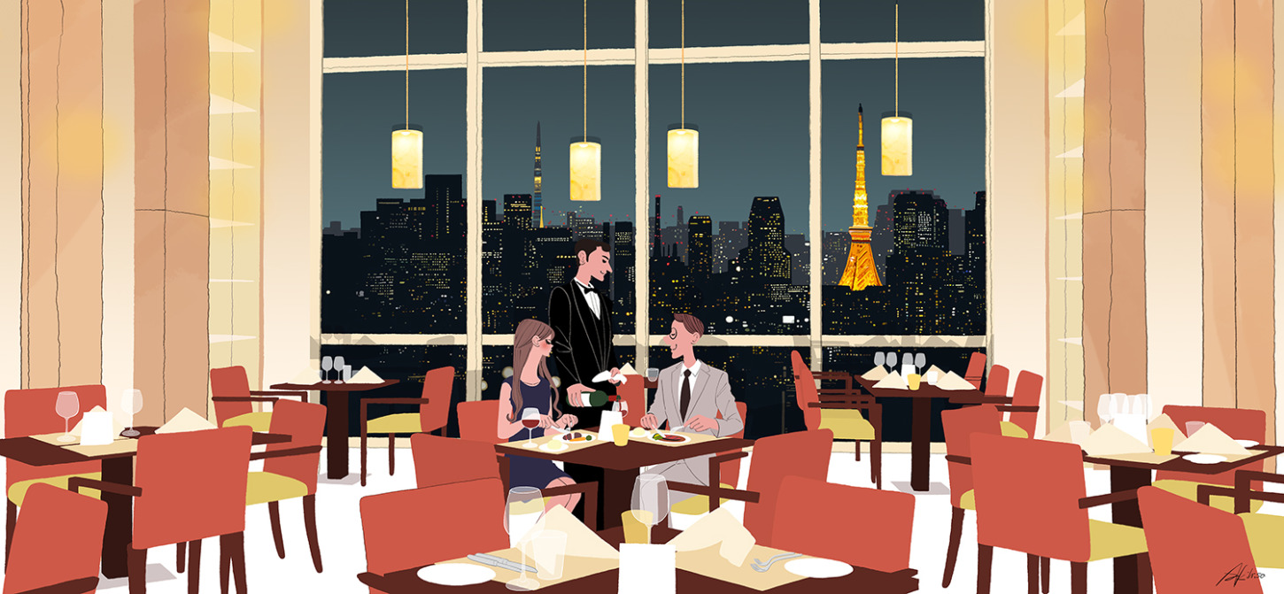 煌めきの摩天楼ディナー: 東京タワーを望むスカイレストラン #tea004